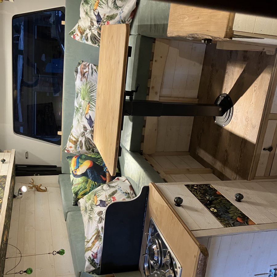 | Equipements | lit réfrigérateur moustiquaire eau chaude douche chauffage toilette lit central réservoir eau réservoir eau usée congélateur chauffage fuel cuisinière |